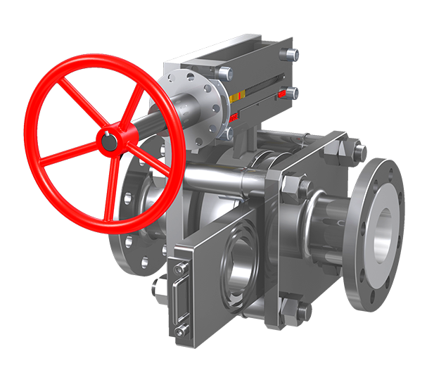 根據金屬硬密封三偏心蝶閥的機構進行改進,研制出雙向流硬碰硬旋球閥。旋球閥廣泛用于水泵出口端、管網系統、回收系統、高位水槽、易水淹的污水系統、防倒流系統等